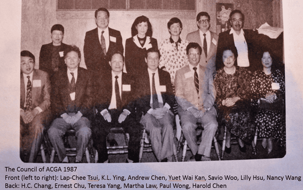 They enjoyed the friendship so much that they arranged to meet in Philadelphia again in 1986. During the ASHG meeting in Philadelphia in 1986, the idea of forming the Association of Chinese Geneticists in America (ACGA) was agreed upon and Andrew was elected the first President. He was charged with writing the bylaws and the ACGA was incorporated in Georgia, USA in 1987.
